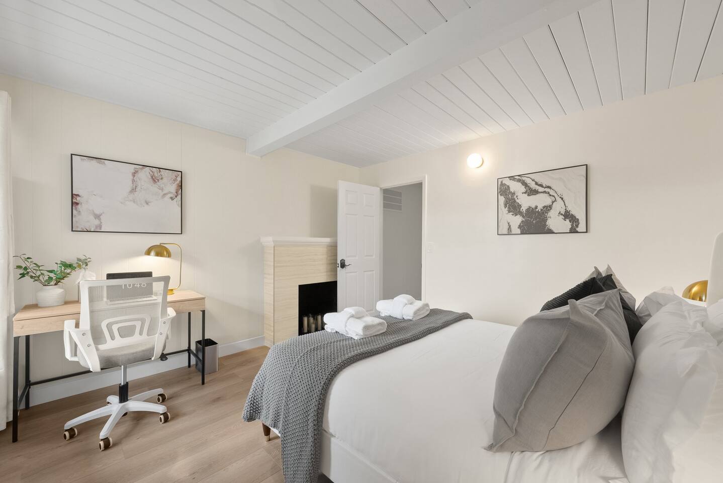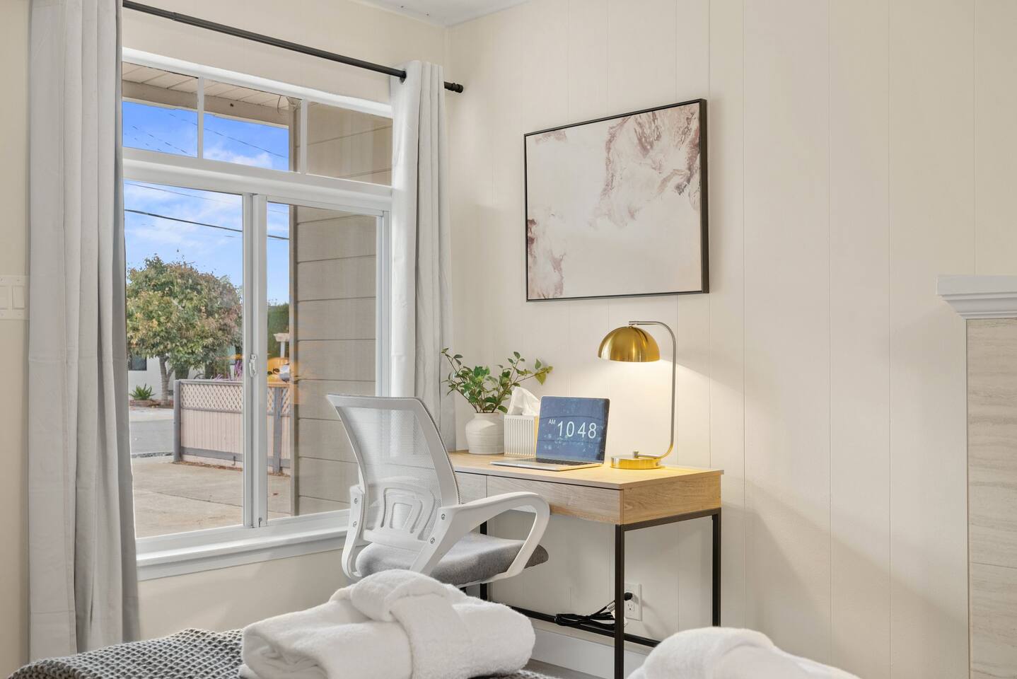 Key Features: - All Brand New Furniture & Appliances - Queen-sized bed with premium bedding and washed bath towel set - Dedicated workspace - Fast WiFi: 500 Mbps high-speed internet for work or leisure. - Ample closet storage including hangers, shoe racks, hooks, mirror - Premium k-cup coffee machine to kickstart your day - Modern Amenities: Smart locks, Nest thermostat, and a brand-new premium brand washer and dryer - Central Heating The shared spaces include a fully equipped kitchen with premium appliances, a dining area, spacious patio and outdoor space, and 1.5 bathrooms shared with up to 3 other guests. Complimentary Services: - Self check-in with a smart lock for 24/7 access. - Luggage storage for your convenience. Prime Location in Silicon Valley: Commute-Friendly: 5 minutes by bike to Face book/Meta 5 minutes by car to Amazon campus 15 mins by car to Menlo Park/Palo Alto Caltrain Station. Within 15 minutes of Google, Apple, Microsoft, and other major tech companies. Exploration: Perfect for visiting Ikea, Stanford University, Stanford Shopping Center, Hospital or exploring the heart of Silicon Valley. Easy Highway Access: Conveniently close to Highway 101. Perfect for No-Car Travelers too! - Bus Access: 1-minute walk to Newbridge St & Almanor Ave bus station. - Free Shuttles: 10-min walk to M1-Crosstown Shuttle which provides direct service to downtown Menlo Park, downtown Palo Alto, the Stanford Shopping Center, and Stanford Medical Center at no cost.