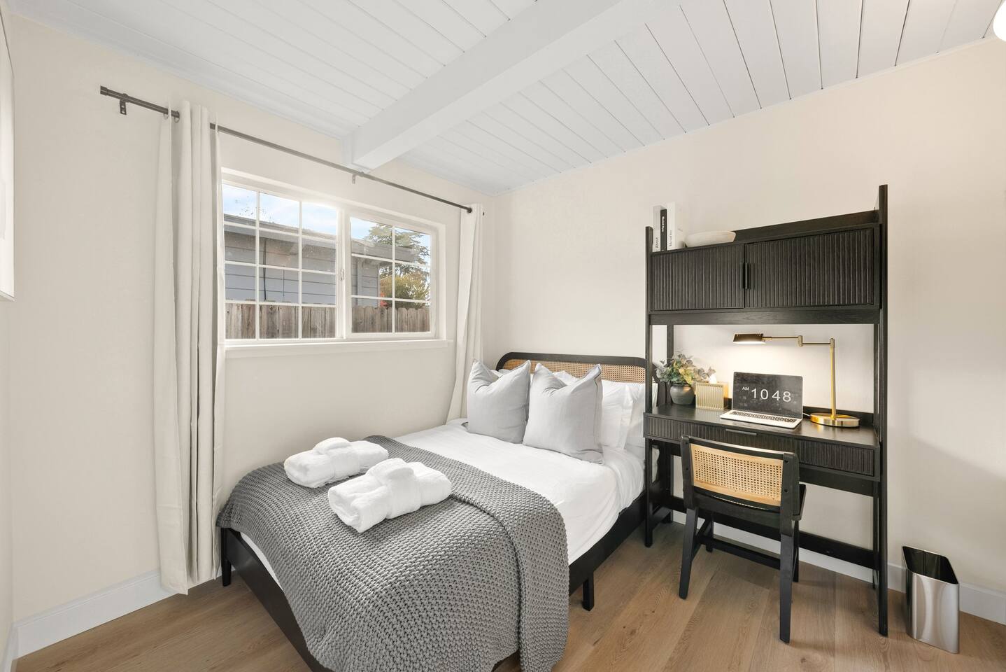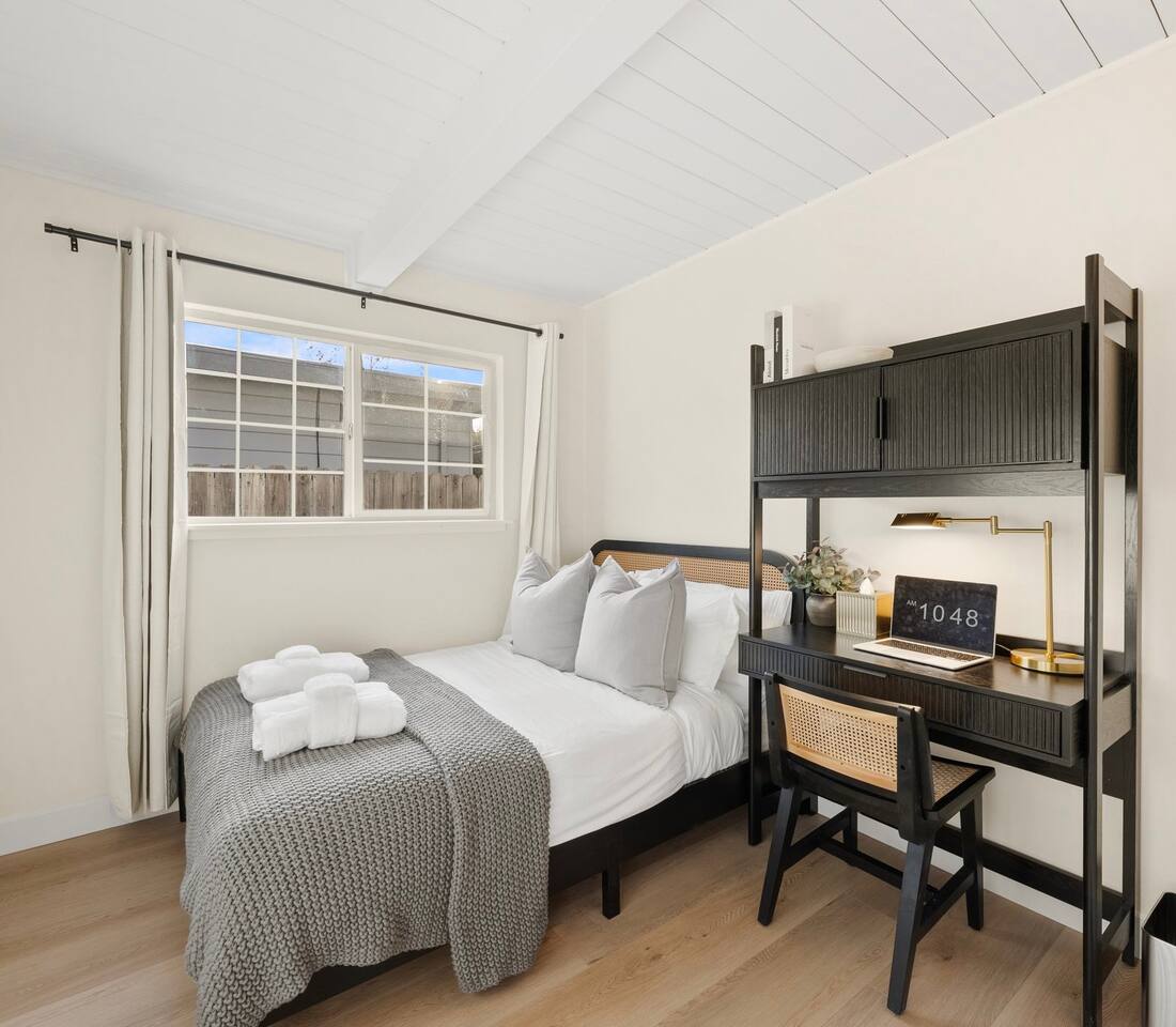 Key Features: - All Brand New Furniture & Appliances - Full-sized bed with premium bedding and washed bath towel set - Dedicated workspace - Fast WiFi: 500 Mbps high-speed internet for work or leisure. - Ample closet storage including hangers, shoe racks, hooks, mirror - Premium k-cup coffee machine to kickstart your day - Modern Amenities: Smart locks, Nest thermostat, and a brand-new premium brand washer and dryer - Central Heating The shared spaces include a fully equipped kitchen with premium appliances, a dining area, spacious patio and outdoor space, and 1.5 bathrooms shared with up to 3 other guests. Complimentary Services: - Self check-in with a smart lock for 24/7 access. - Luggage storage for your convenience. Prime Location in Silicon Valley: Commute-Friendly: 5 minutes by bike to Face book/Meta 5 minutes by car to Amazon campus 15 mins by car to Menlo Park/Palo Alto Caltrain Station. Within 15 minutes of Google, Apple, Microsoft, and other major tech companies. Exploration: Perfect for visiting Ikea, Stanford University, Stanford Shopping Center, Hospital or exploring the heart of Silicon Valley. Easy Highway Access: Conveniently close to Highway 101. Perfect for No-Car Travelers too! - Bus Access: 1-minute walk to Newbridge St & Almanor Ave bus station. - Free Shuttles: 10-min walk to M1-Crosstown Shuttle which provides direct service to downtown Menlo Park, downtown Palo Alto, the Stanford Shopping Center, and Stanford Medical Center at no cost.